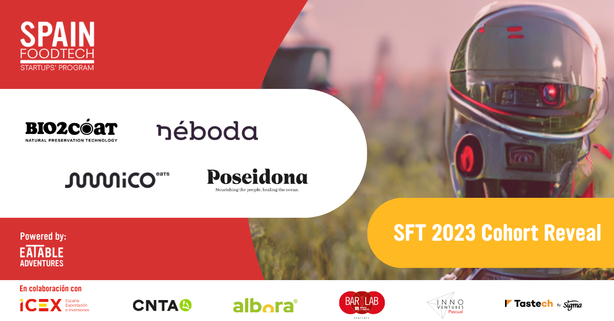 Spain Foodtech Startups’ Program, promoted by Eatable Adventures and supported by ICEX and CNTA, presents its 2023 cohort.